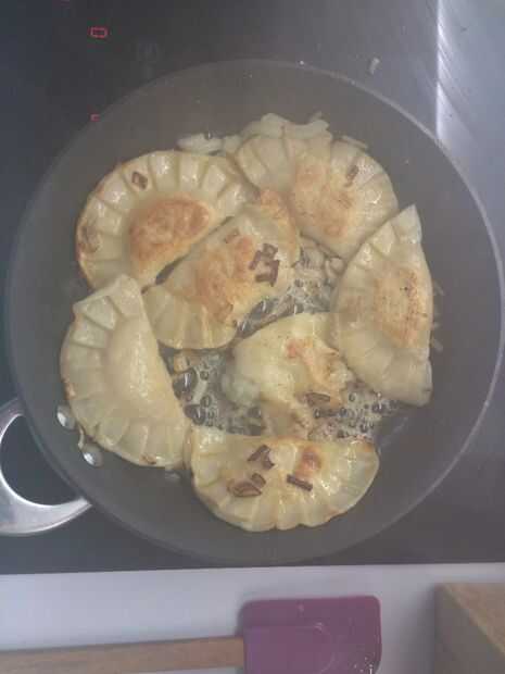 Cuando quieres servir, recalentar con mantequilla y cebollas hasta que estén calientes.