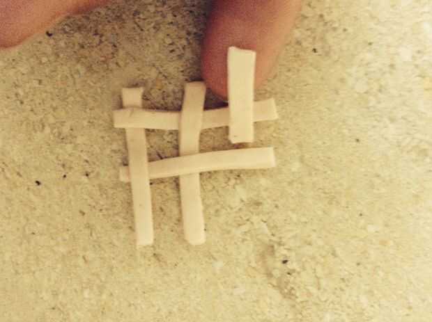 Primero tomar la tira central y tomarla y otra debajo de eso. Entonces toman en el borde y poner uno debajo de eso. Poner en el centro y poner la última de ellas bajo.