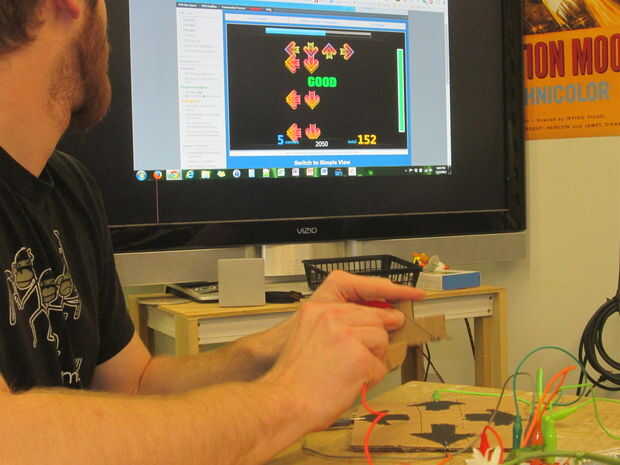 Ahora intenta jugar DDR con sus pies de cartón diminutos y pequeño cartón DDR!