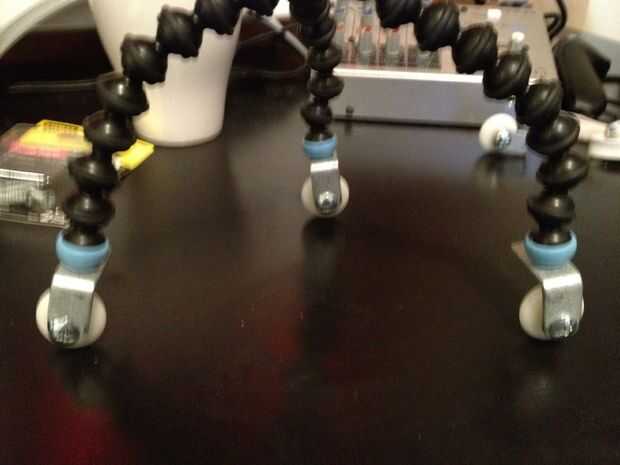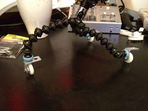 Me encantó la idea de hacer mi gorillapod en un carro, pero la mía es la edición de videoy un poco más pequeño que el original. Lo uso con una glif tomar video con mi iphone. El gorillapod vídeo una ventaja es que tiene pies magnéticos. Pensé que podía utilizar unos soportes de metal y algunos cojinetes para hacer pies desmontables para hacer mi trípode un carro cuando quería y luego quitarlos cuando no quiero. Funcionó bastante bien! Recogí todo este hardware en la tienda en $ 8.00.