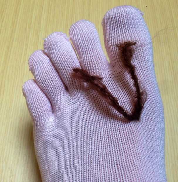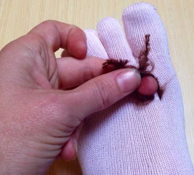 Una vez que has creado y corte los bucles, es hora de atar el hilo. Mi hilo era muy alto coeficiente de fricción y el calcetín de punto muy apretada, así que sólo hice un solo nudo y había queda solo.