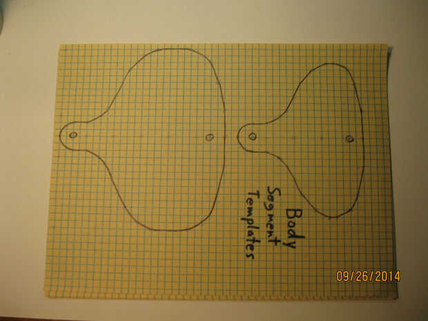 Cuando me acerco a un diseño como este me gusta descomponerlo en sus partes componentes. ¿Qué necesita para construir un ciempiés? Este proyecto fue inspirado por la idea de utilizar tubo de PVC para replicar segmentos del cuerpo de los ciempiés. El ciempiés rojo arriba es similar a la de uno que encontrado en Hawai ' i. Observe que el tamaño de los segmentos del cuerpo se alterna entre segmentos finos y gruesos. He diseñado una plantilla para dos segmentos de diferente tamaño corporal.