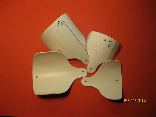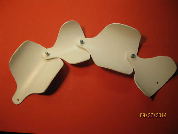 Había grabado en el diseño de plantilla de papel milimetrado para desecho plástico película fuera un monitor de pantalla plana rota. Me corte las plantillas con un cuchillo de la manía y había trazado sobre las piezas de PVC. He cortado con una sierra de calar y lijar los bordes lisos. He marcado y había perforado de los orificios de acoplamiento. Montado el cuerpo con algún hardware recuperado para probar la gama de flexibilidad. ¡ Genial!
