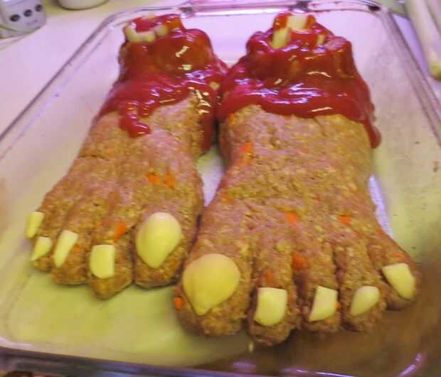 Aquí es una receta perfecta para una comida de plato principal de Halloween muchos escupitajos deliciosa! FEETLOAF! Super fáciles de hacer. Use su receta favorita de pastel de carne o descarga, impresión y mi uno probado y verdadero.