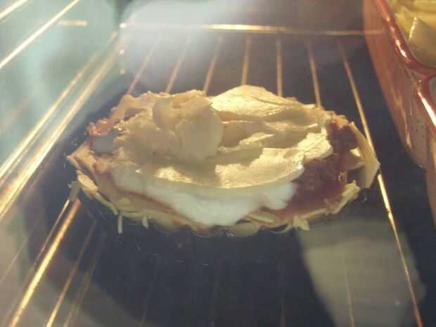 ahora cocer en el horno con 392° F hasta que el queso esté dorado - 20 minutos