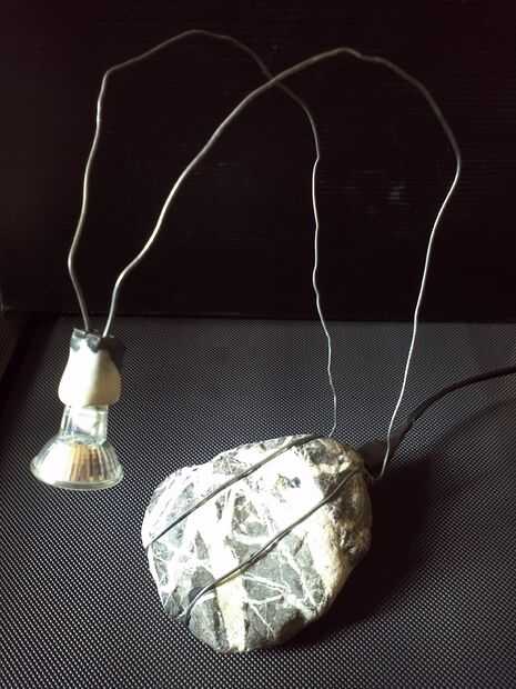 El objetivo fue hacer la lámpara de sobremesa halógena más barato y más simple. Básicamente es un transformador, que transforma el letal AC actual viniendo su taco en un seguro 12v, una piedra para la base y algún alambre de hierro para mantener una cabeza de lámpara sugru moldeado. Usted puede personalizar o ampliar/modificar el proyecto con diferentes piedras, topes de sugru diferentes en la base, o poniendo algún tipo de resistencia variable para atenuar la luz, o también realizando el cambio con el alambre del hierro, etc.... las posibilidades son casi infinitas.