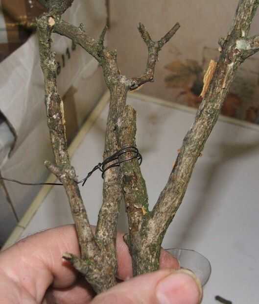 Ajustar las ramitas para una forma convenientemente escalofriante mirada, usando el cable para sujetar varios ramas en posición.