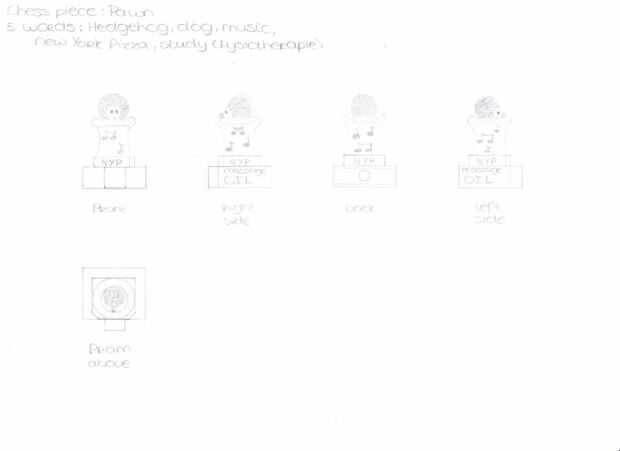 Elijo el peón como pieza de ajedrez, así que tuve que hacer que parezca un peón (utilicé la imagen de arriba para asegurarse de que mi dibujo se vería como un peón). Las mediciones para el peón tenían que ser 3 x 3 x 5 cm.