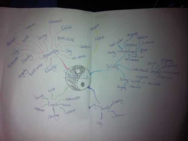 Primero hicimos una mente personal mapa. Utilicé a mis características y liado en un grupo: mi personalidad.