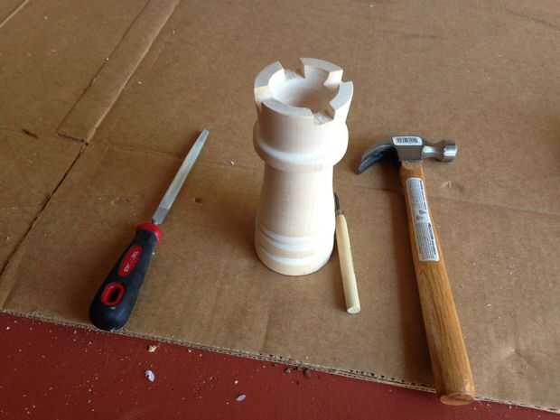 Usando una sierra de mano, o herramienta rotatoria o herramienta de talla de madera, retire con cuidado las piezas donde las muescas son ser formado.