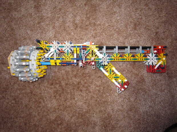 Este es el nuevo rifle de K'nex que acaba de hacer. Tiene una torreta ocho redondos en el frontal, (cortesía de 'KILLERK') y dispara rondas oodamo. Esta arma puede llegar a 35 pies, y teniendo en cuenta que este es mi primer rifle, creo que es bastan