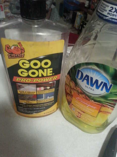 • Entonces puede limpiar el vidrio del resto de la manera de con algunos Goo Gone y enjuague luego de un muy acabado.