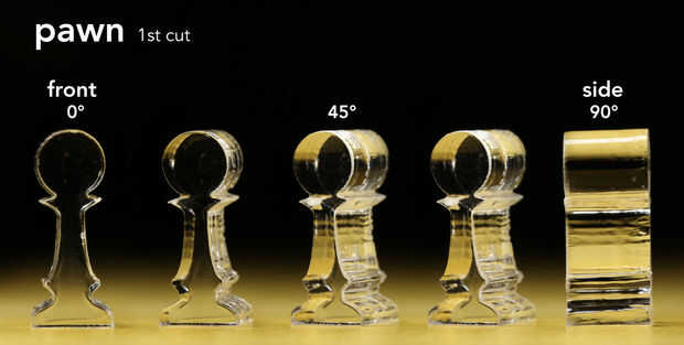 Piezas de ajedrez miniatura 3D hecho con un cortador láser (14 / 26 paso)