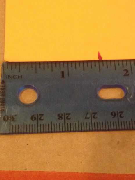 Primero medir desde la esquina 2 pulgadas por 1.5 pulgadas entonces cortar uno al empezar