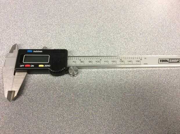 Usé un Verniers Digitales para medir mi parte. Con calibradores digitales, es importante siempre cero hacia fuera al empezar a usarlo. Esto se puede deslizar los dos brazos juntos y luego presionar el botón zero. Estoy seguro que hay otros tipos de calibradores que son diferentes así que experimentaran y ver lo que funciona. O, si no tienes una pinzas, puede utilizar una regla o cinta métrica, aunque puede conseguir complicado con piezas pequeñas y no son tan precisas.