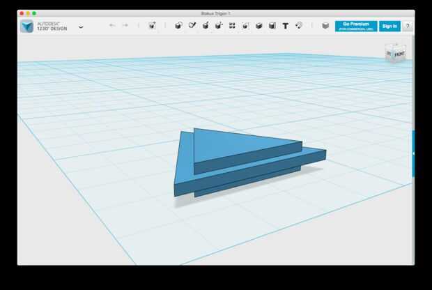 Entonces sacó cada uno de los triángulos 1 mm para el eje z. Al mover el triángulo más grande hasta 2 mm en lugar de sólo el 1 mm requerida, mantienen los dos sólidos separados. Esto me permitió copiar el más sólido y hasta 3 mm, o en la parte superior la forma de prisma triangular más grande.
