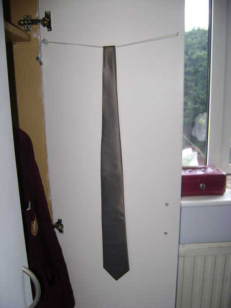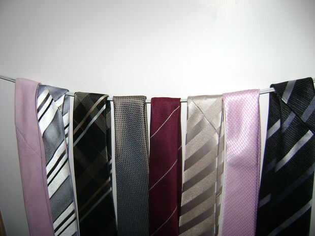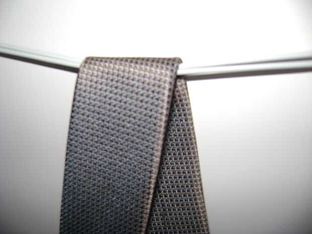 Solo pone la parte fina de la corbata cada el alambre y tire hacia abajo de modo que existe una misma longitud de lazo a cada lado. Después que ca cuelgue tantos vínculos como puede/quiere!