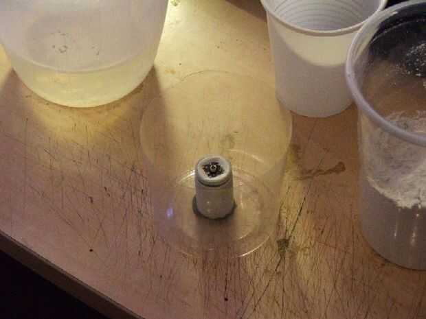 El patrón está montado con un poco de plastilina, con la principal cara del patrón hacia arriba.