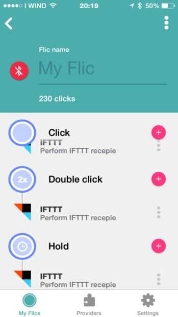 Pues primero tienes que emparejar botón de Flic para el smartphone con la app de Flic. Luego, siempre en la aplicación, para cada tipo de haga clic en crear una receta de efectuar del IFTTT. Asumiendo que usted tiene una cuenta IFTTT, aplicación para smartphone necesita ser autenticado, así escriba su usuario y contraseña.
