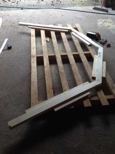 Encolar y atornillar los extremos angulados. Utilizar al menos 100mm uno mismo-hundimiento de tornillos para madera (o taladre y avellane los orificios).