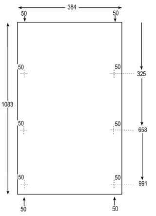 1. en ambos lados Mida y marque lo siguiente: - desde el borde superior a 325m 658 y 991 mm - desde el borde anterior y posterior en 50mm pulg - el borde superior e inferior a 50mm en.