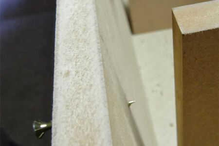 Para la colocación exacta, conduzca el tornillo a través de la Junta para que muestre sólo la punta del tornillo a través del otro lado. Utilícela para marcar los agujeros en los bordes de la sección de divisor de cajón centro.