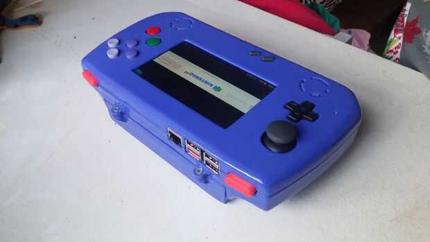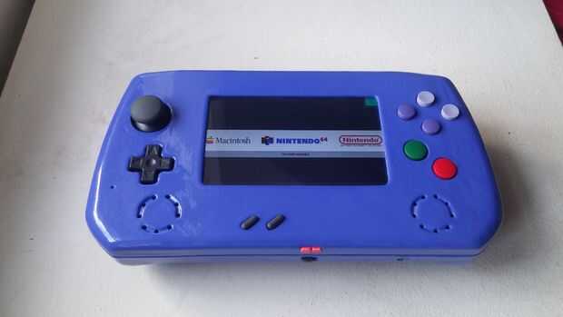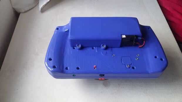 La carcasa fue diseñada para ser más cómoda al ser utilizada, y albergar más botones, para poder funcionar como control de Nintendo 64 y Playstation 1. Como este era el principal propósito, encontré la limitante de las guías encontré funcionaban hasta frambuesa Pi 2, por requerir menor Amperaje continuo. El de albergar para poder frambuesa Pi 3, de mayores os y mayor potencia, decidí invertir el proceso de la guía de Adafruit de usar una batería de 3.7v y usar un elevador de tensión a 5v, y en lugar de eso, usar un reductor desde una batería de radiocontrolado de 7.4v. Como esto limitaría el uso de la consola mientras esta se carga, decidí usar una batería de alto amperaje permita varias horas de uso continuo (5000mah).