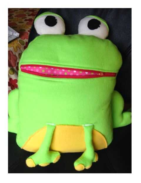 Píldora del paño grueso y suave hace que sea mimoso y lavable; Bolsillo de PJs es funcional; piernas y ojos de rana hacen tonto lindo.