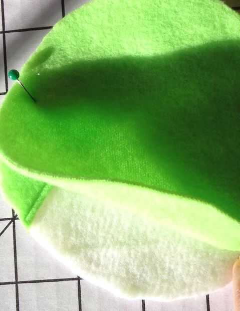Paso 4: Con los lados del derecho juntos, con 3/8" costura, puntada de la parte posterior del ojo (círculo verde sólido) a blanca del globo ocular, dejando 1-2" abra en la parte inferior para dar vuelta.