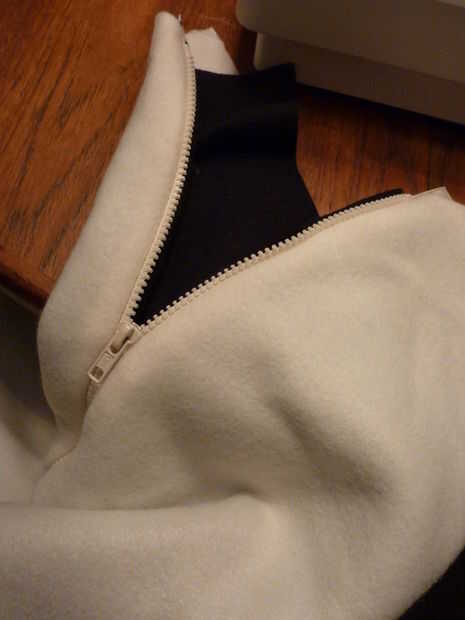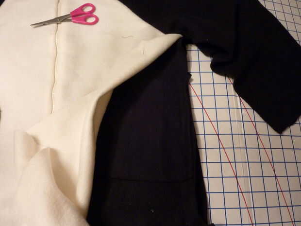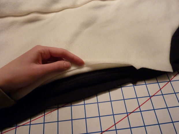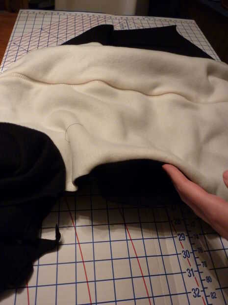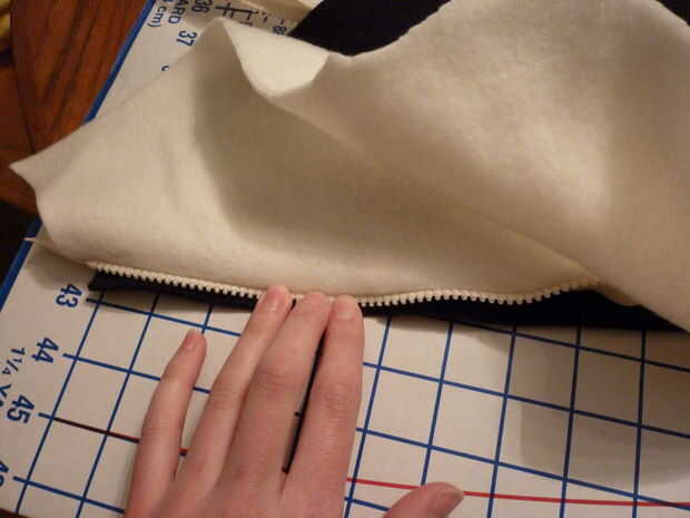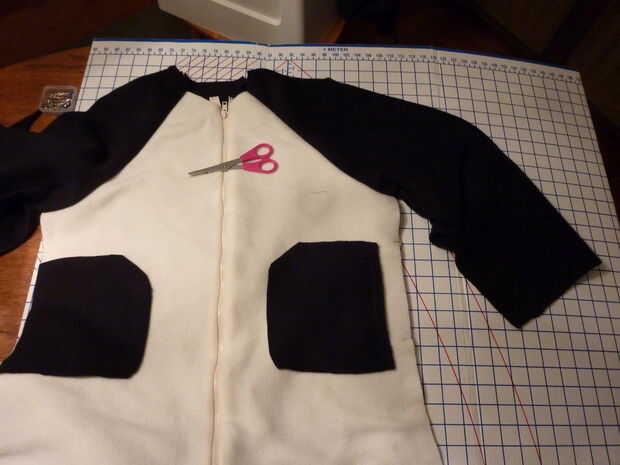 Otro paso opcional es la cremallera de la línea — si usted planea usar esto contra su piel desnuda, es una idea especialmente buena como cremalleras deporte no son las más comodas. Los pijamas de pingüino blanco y negro, con dos capas de tela en la parte frontal, son ideales para la uno mismo-guarnición. Paño grueso y suave no desvela, por lo que no hay necesidad para dobladillar salvo por razones de estética. Usé el negro dentro de la tela frente a la línea de la cremallera no plegable sobre o dobladillos de cualquier forma los bordes del corte hecho por la mitad para dar cabida a la cremallera. Difundir la pieza frontal negro, boca arriba, sobre la mesa, extendió la pieza frontal blanco, con cremallera unida y descomprimido, también boca arriba en la parte superior. Coinciden con las piezas blancas y negras a lo largo de los bordes exteriores y les suave para que alinee en todos los puntos. El negro alrededor de la abertura de la cremallera debe salir apenas más allá de los dientes de la cremallera, esto es como debería ser para permitir correctamente línea la cremallera desde dentro. Sujeta la cremallera y tela negra en su lugar, voltee la tela blanca para exponer el interior de la cremallera y la tela negra a esta pieza de cremallera interior del perno. Para coser juntos los pedazos, usted necesitará tenerlos abiertos hacia fuera en direcciones opuestas y coser a lo largo de la mitad, esto es difícil pero no imposible.