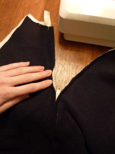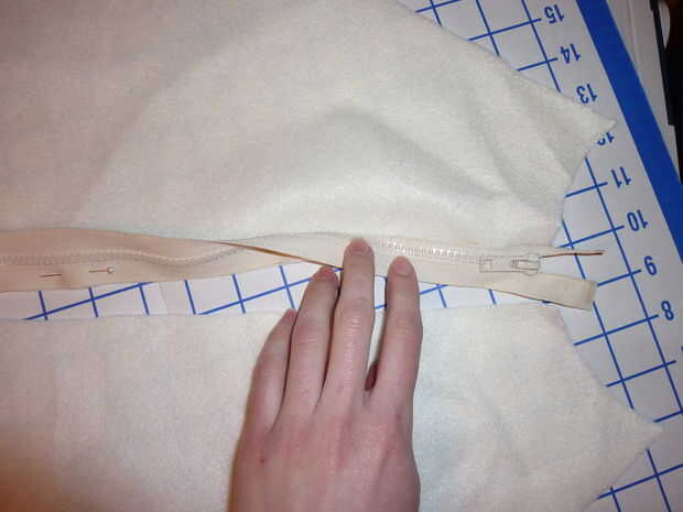 (Esto es inserción básica cremallera, mal ejecutados y mal explicado. Omitir este paso y averiguar la cremallera a ti mismo si eres bueno en la costura. Si tienes problemas Entendiendo los pasos, mira las fotos.)