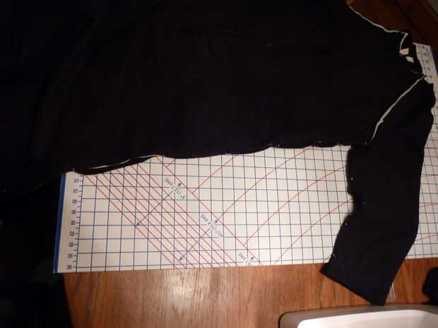 En primer lugar, hay una costura en cada manga que debe ser cosido, doble las piezas de manga por la mitad para que la línea de los dos lados de la parte superior en forma de V (con una estrella marcando la parte inferior de la V) y coser recto a lo largo de esas líneas. Esto es para hacer los hombros de las mangas raglán. A continuación, coser juntos los cuatro pedazos principales.