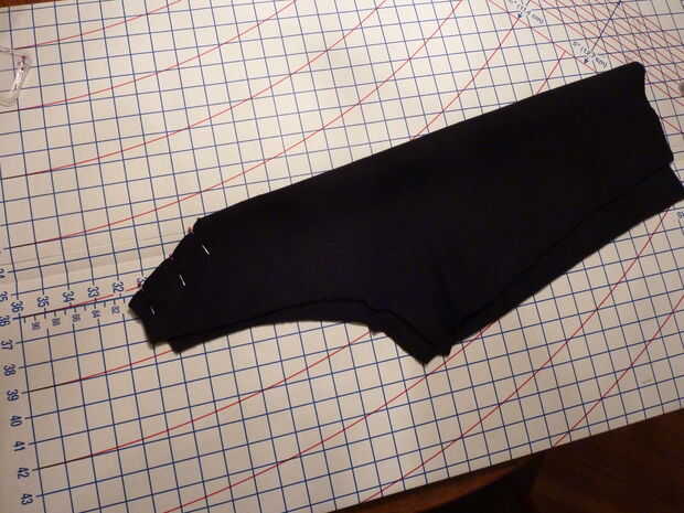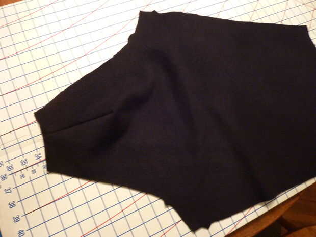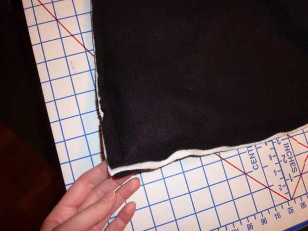 Una vez que se hacen las costuras laterales, alinee la parte inferior (si las piezas delanteras y traseros no coinciden absolutamente, lo largo, puede cuidadosamente recortar uno o el otro abajo hasta que coinciden. Luego coser recto en la parte inferior (a cortar los pies de los agujeros en el paso siguiente).
