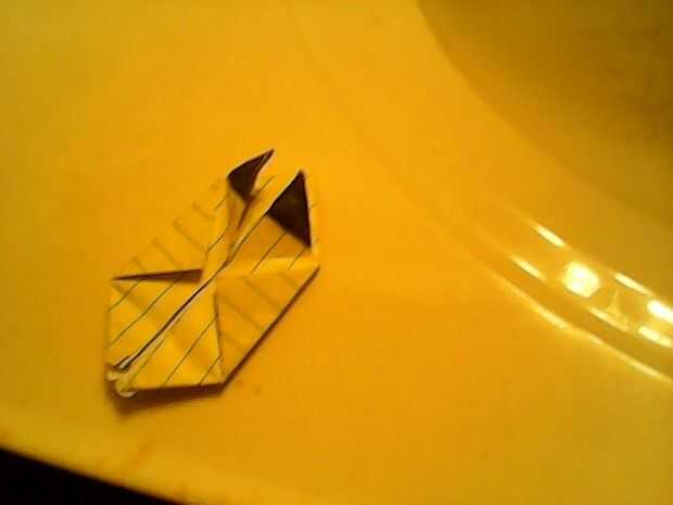 ok ahora toma la otra dos y hacer un triángulo entonces debe tener negro de y amarillo en el papel