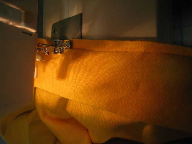 Para los dobladillos, esencialmente es lo mismo pero primero se debe coser todas las bandas juntas primero. Luego coser los extremos más cortos y pliegue para crear el dobladillo.