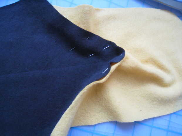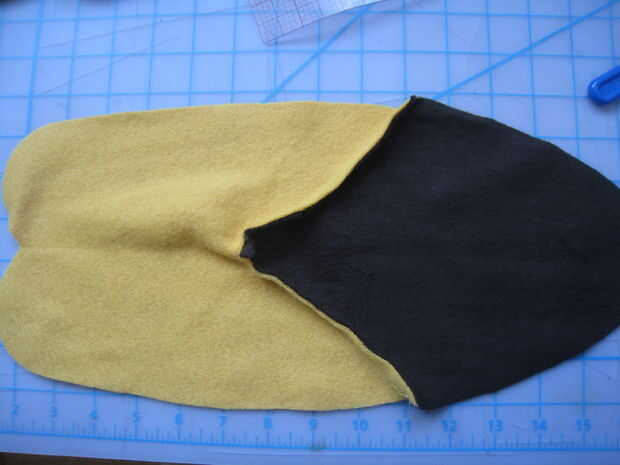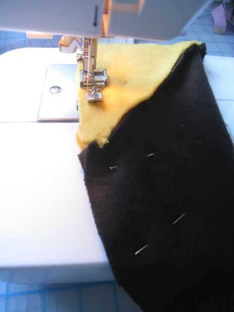 Primero cubrió la parte superior e inferior Junta y cosida. Luego coloqué los lados del derecho juntos y cosieron el oído.