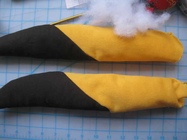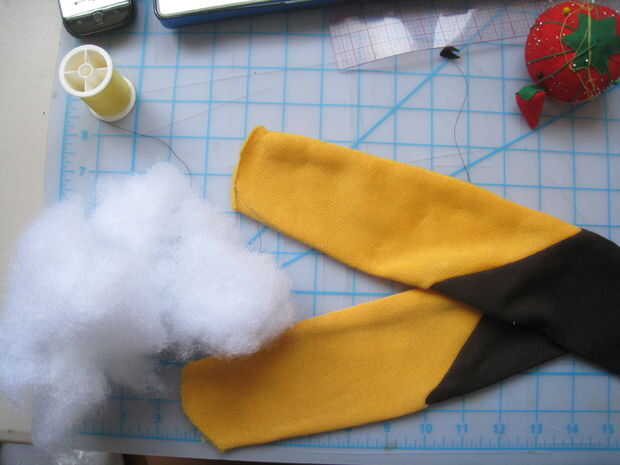 Ahora quería los oídos que se rellena un poco usé polyfil para llenar los oídos un poco. Material para el contenido de su corazón!