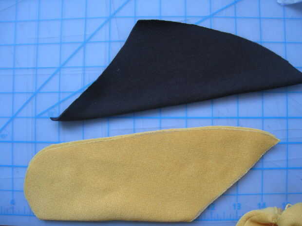 Para los oídos, recomiendo utilizar 2 colores diferentes para que coincida con cada una de las telas para un look más cohesionada. Que tal vez necesite usar un hilo de rosca marrón en las partes de color marrón y amarillo en amarillo.