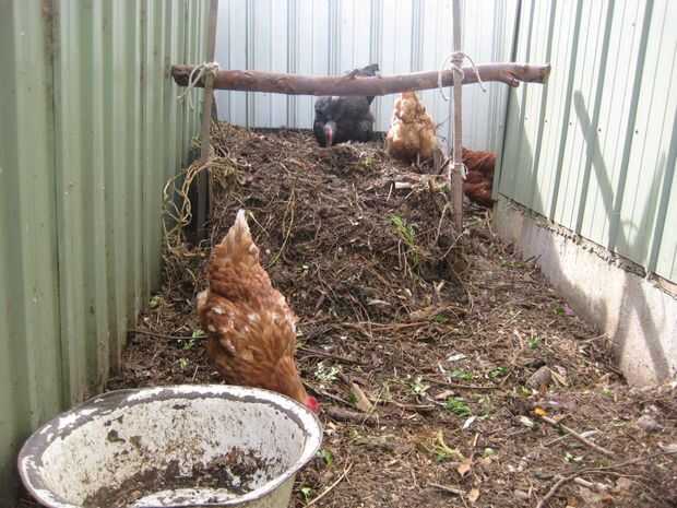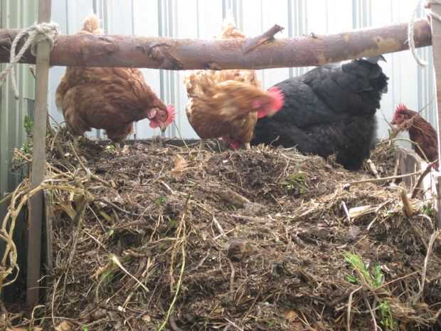 Si usted tiene un montón de compost y un poco de espacio extra podría considerar cercado el compost y poniendo en algunos chooks. Eso es lo que he hecho. Los chooks encanta voltear la pila de composta para mí mientras buscan criaturas poco sabrosas comer. Que generosamente donan estiércol que rayar. Yo les he dado una percha para que si se sienten como un resto que puedan generar estiércol en comodidad.