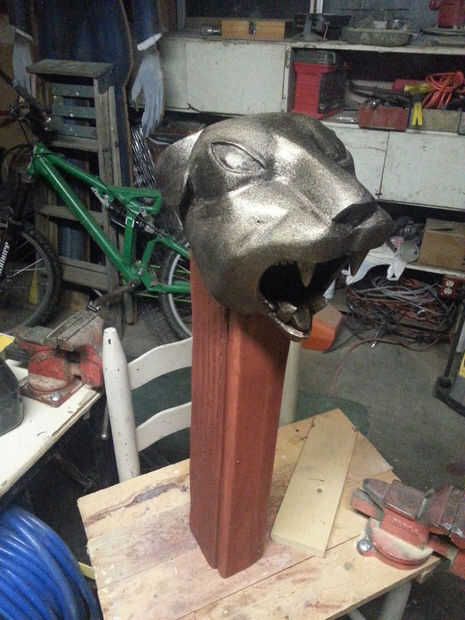 También hice esto... busto que será instalado en el poste de centro. Se trataba de una talla de un gato que hasta el intento de hacer en un perro. Como me dijo mi amigo, se parece un Chupacabra.