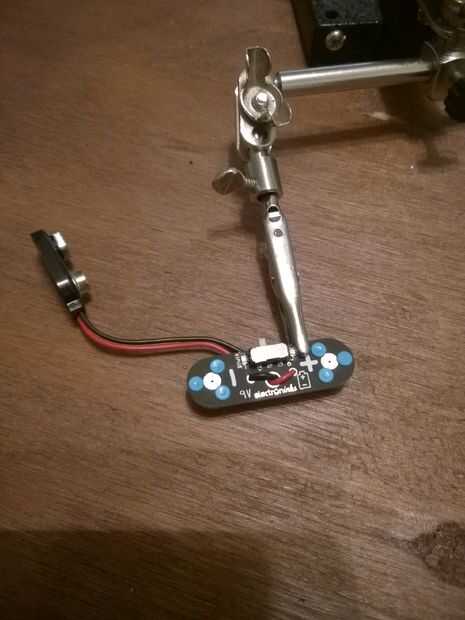 Lo hice con mi conector de batería de 9 voltios y funcionó muy bien!