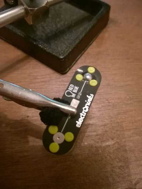 No queremos derretir accidentalmente los broches de presión en los pies, así que asegúrese de colocar su punta entre ellos y en el contacto.