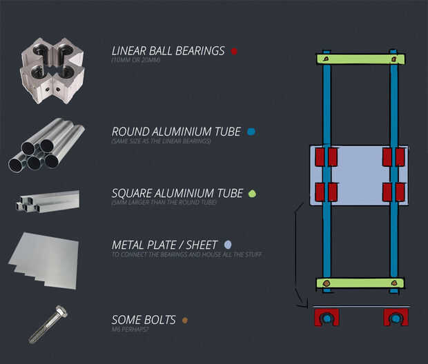 Como para el regulador sí mismo, usted puede inventar lo que el infierno quiere (que lo hice) pero en retrospectiva, creo que el más fácil y más profesional solución habría sido justo orden lineales rodamientos de bolas (no sabía acerca de ellos hasta que mi amigo vio lo que había hecho y entonces tiró a uno fuera de su caja de herramientas y dijo "esto podría trabajar así") para ¿, usted apenas necesita extra: 2-4? Hoja de aluminio/acero y rodamientos de bola lineales