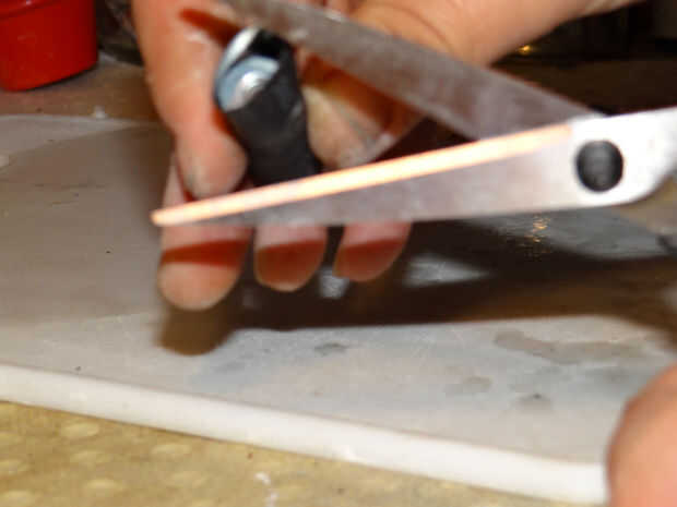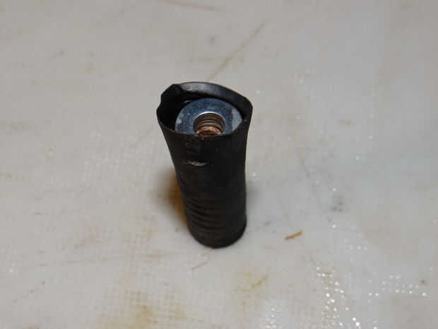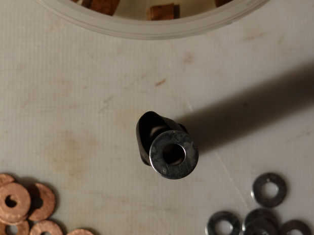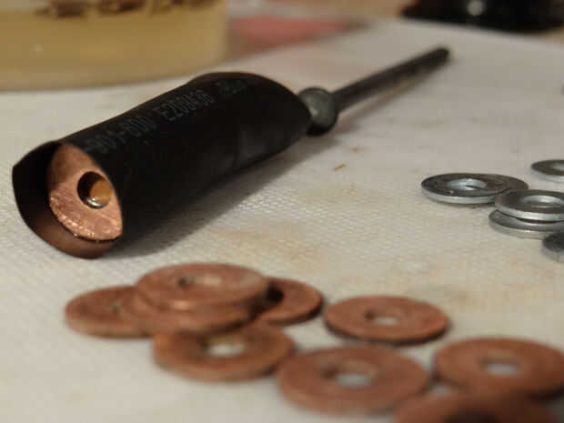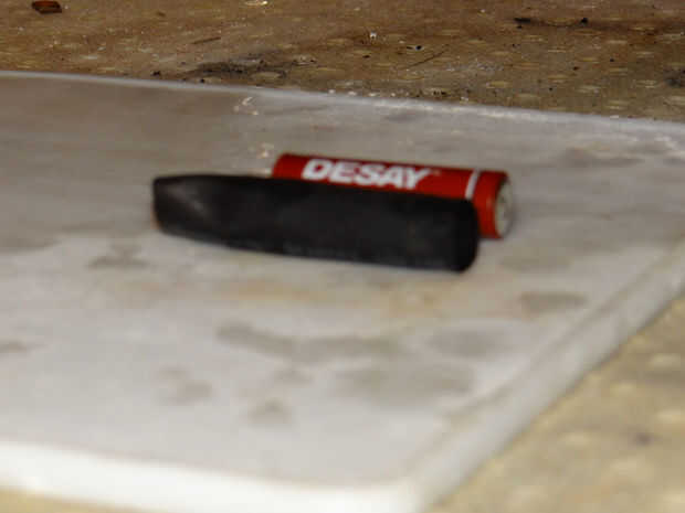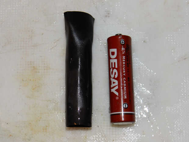 Antes de sellar la batería, se compara con una batería estándar de AA para la longitud correcta. Si es necesario, agregar arandelas de Zinc adicional hasta alcanzar la longitud correcta. Tenga en cuenta que el pedazo que sobresale en el lado positivo se añadirán más tarde con soldadura.