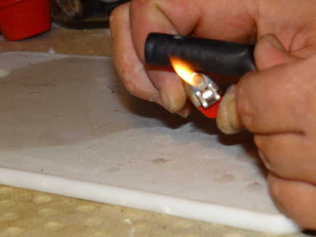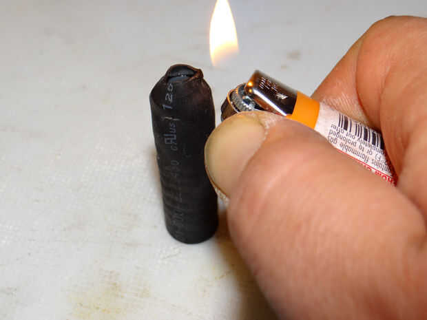 Una vez alcanzada la longitud correcta, comenzar el extremo que empezaste, asegurándose de hacer un cierre hermético de la calefacción. A continuación calentar los lados de la batería hasta que el tubo del encogimiento del calor contornos fuertemente a las ondas de las arandelas. Luego, cortar el sobrante dejando sólo 1/4" y el calor hasta que se forma un sello hermético en el otro extremo.