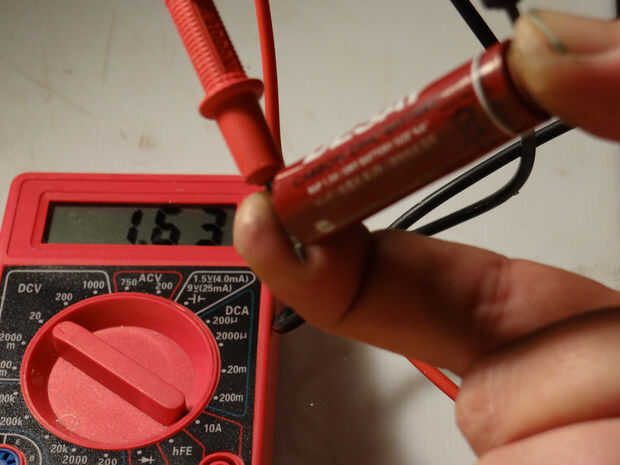 Si has hecho todo correctamente debe ser capaz de conectar el multímetro (misma configuración que antes) y obtener una lectura en o alrededor de 1,5 voltios!