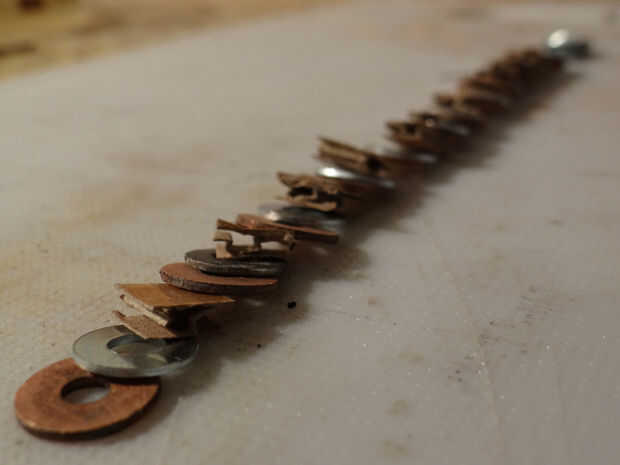 Circuito de camisa es suave usable protoboard con los componentes de circuito DIY modulares que pueden trabarse en la camiseta por el usuario. La motivación detrás de circuito de camisa es el paradigma de la 'caja negra' en que a menudo se entrega Ed