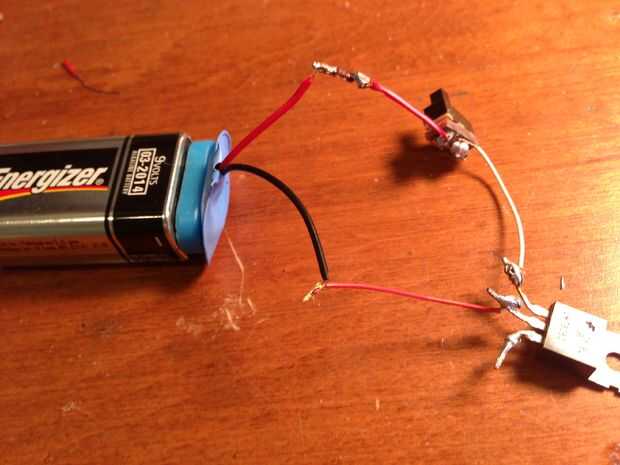el otro extremo del interruptor para el primer cable del regulador de 5v de la soldadura y el alambre medio del regulador de 5v para el extremo negativo de la grapa de 9v de la soldadura.