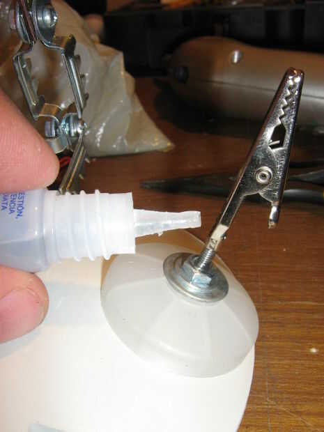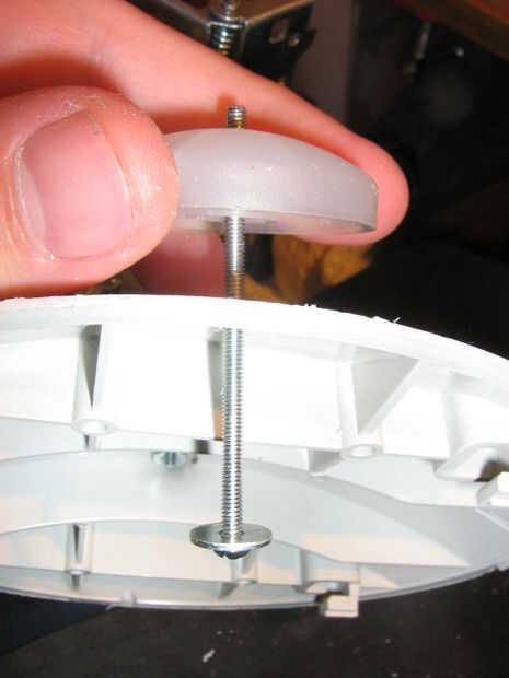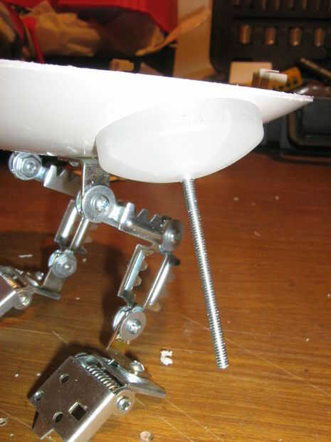 Colocar las ruedas con tornillos largo y sujetar con un tornillo. Cortar el tornillo e inserte una pinza en el extremo. Hacer los dos brazos. Usar epóxico para la fijación de la pinza al tornillo.