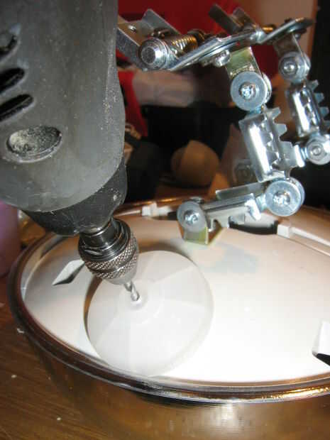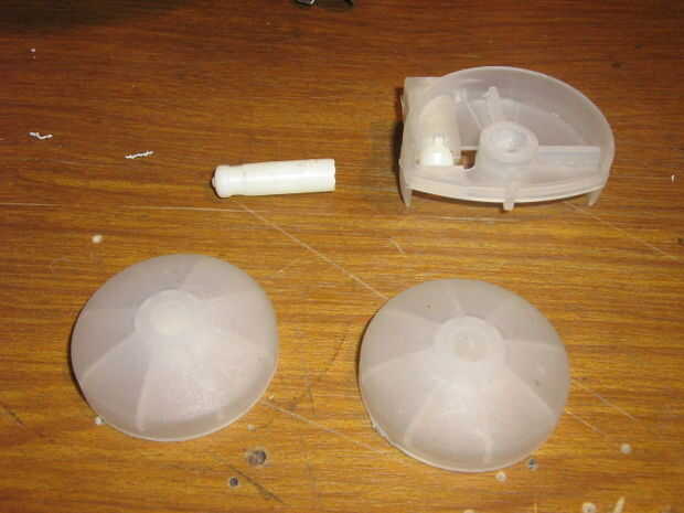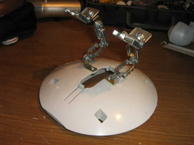 puede convertir un viejo joystick Genius en junkbot como los de la película "Pilas no incluidas". Sólo desmontar la palanca de mando y el caso de uso.Yo uso plotter engranajes y LEDs para los ojos, las perillas del horno para los pies, alambre y